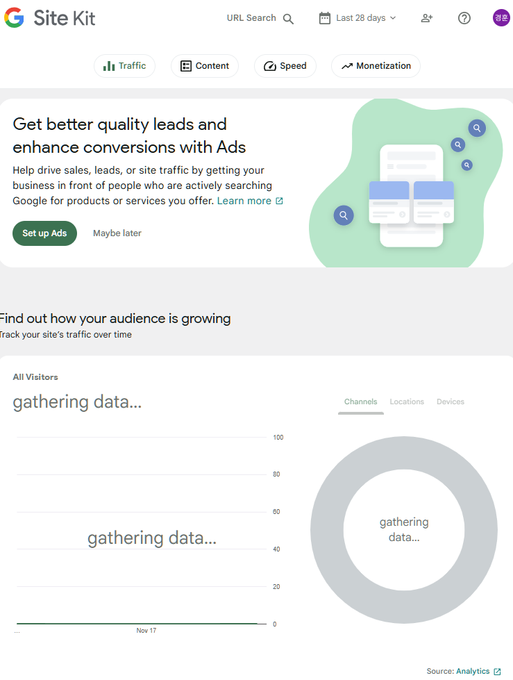 - ✅ Site Kit: 워드프레스 안에서 데이터 관리